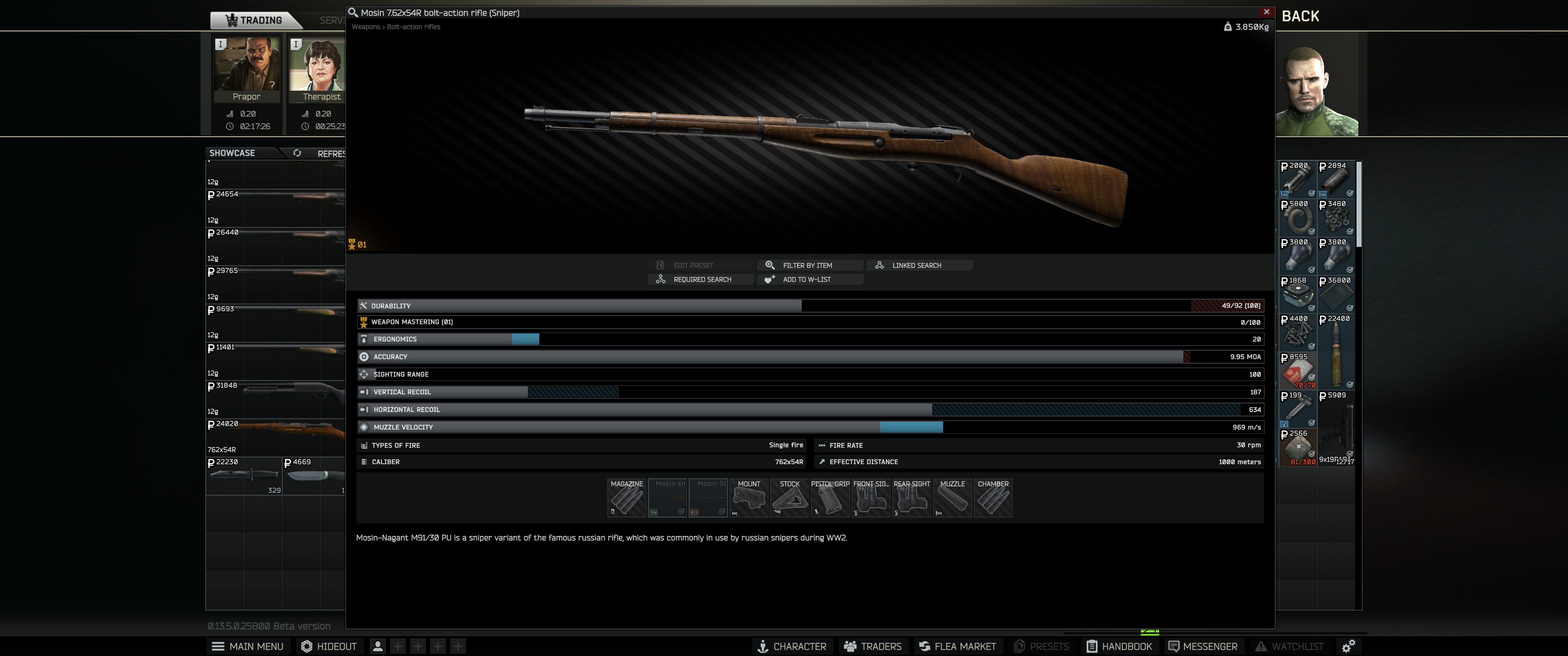Jeder Trader hat unterschiedliche Repair-Skills. Prapor ist der günstigste von den Tradern. Ebenso ist dieser auch in der Qualität der Reparatur der schlechteste. Wie oben in dem Bild zu sehen, kann bei Ihm dauerhaft die Haltbarkeit der Waffe bei dieser Reparatur um bis zu 4.8% sinken. Als zweitbester Trader liegt Skier. Der Beste von den Tradern ist Mechanic. Dieser würde bei der selben Waffe oben in dem Bild 1000 Rubel teurer sein, jedoch würde dieser einen maximalen Verlust an Haltbarkeit von 2,8% verursachen.